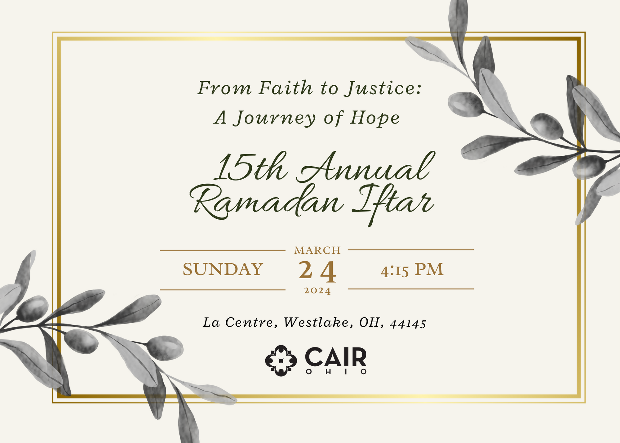 CAIR-Ohio 15th Annual Ramadan Iftar- From Faith to Justice: A Journey of Hope